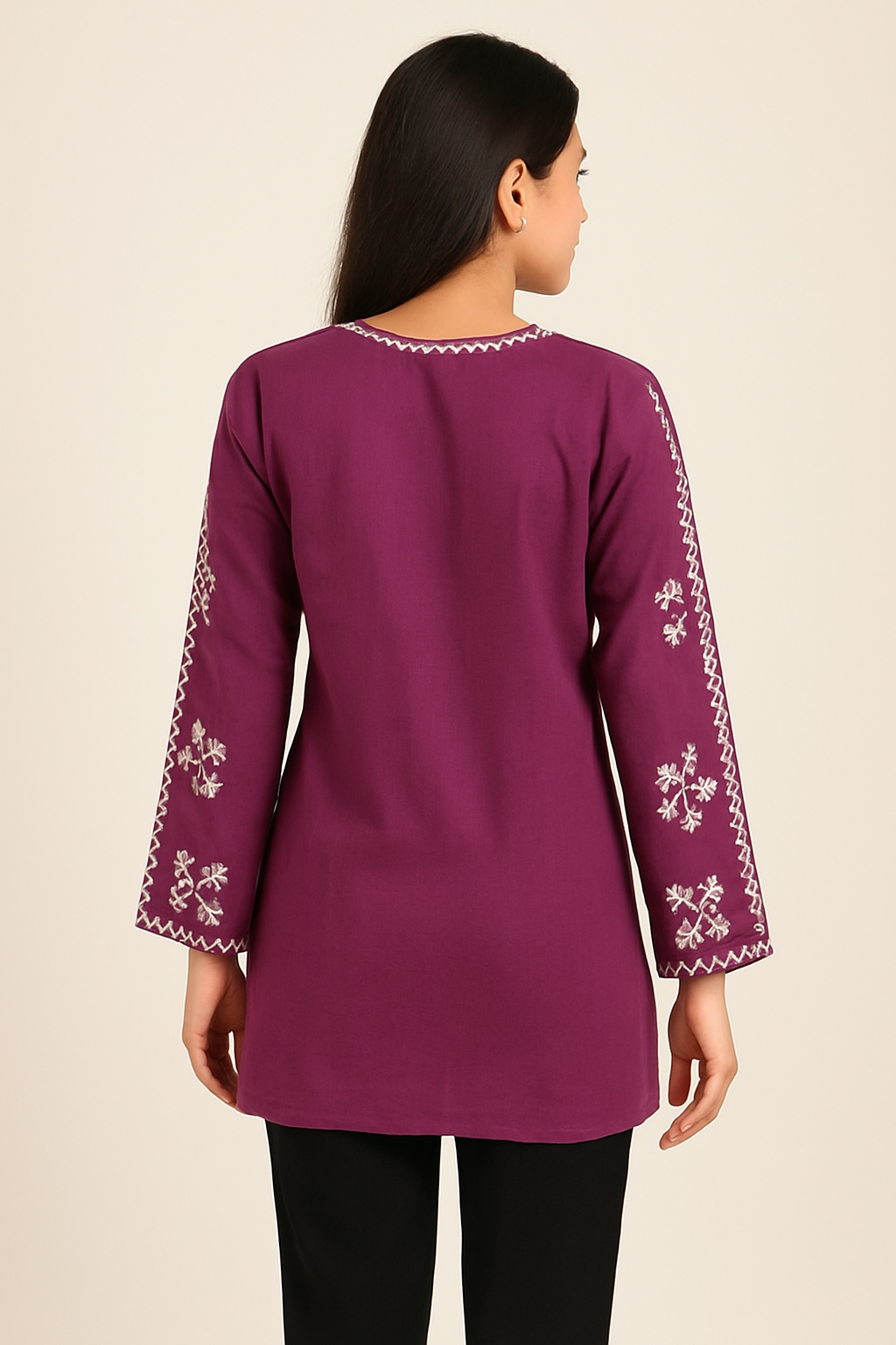 Ethnic Cotton Flex Kurta with Floral Sleeve Embroidery – Trendy Women’s Wear