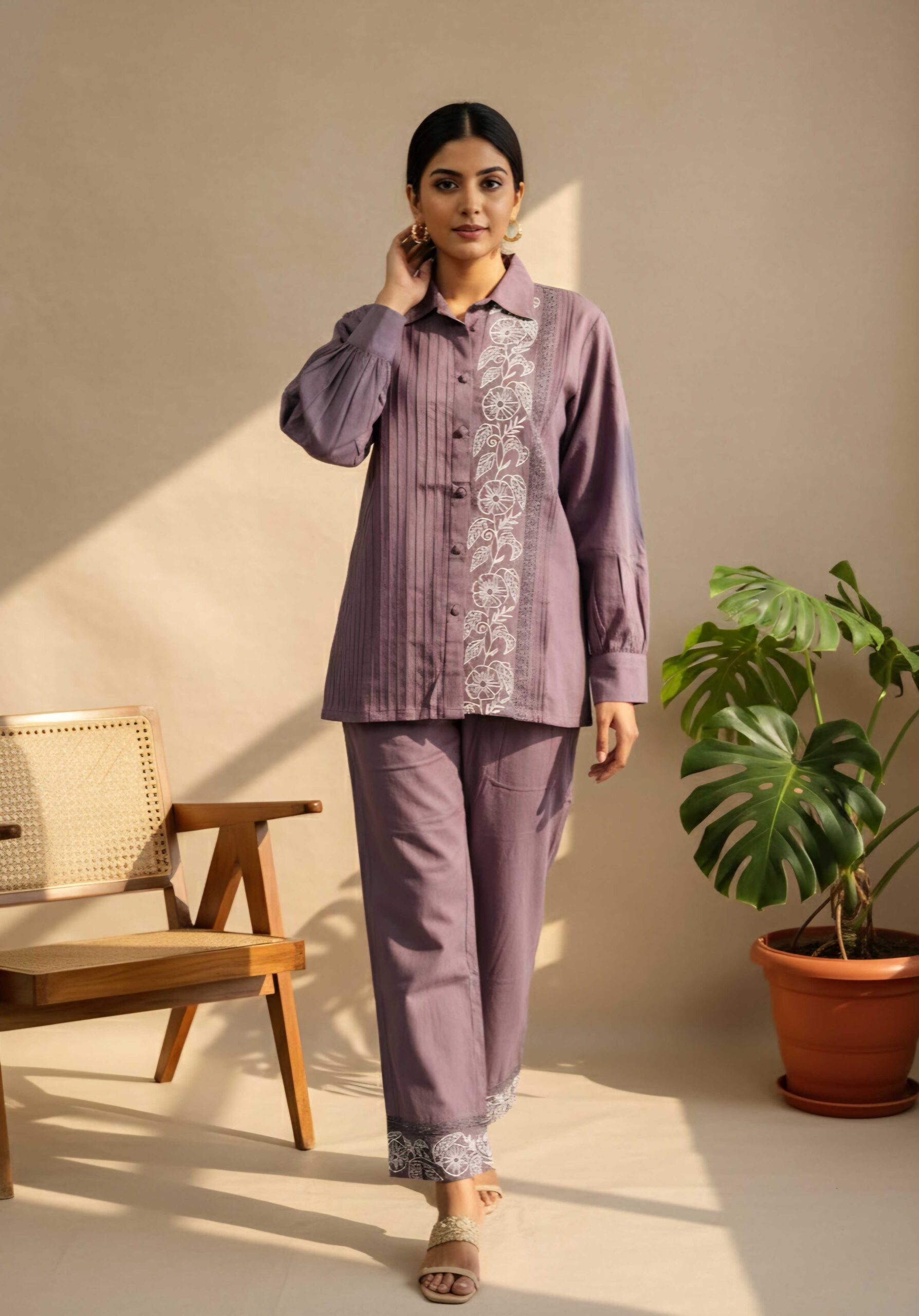 Discover your new go-to for effortless elegance with the Ilaaha Kashida Pintuck Co-ord Set.
